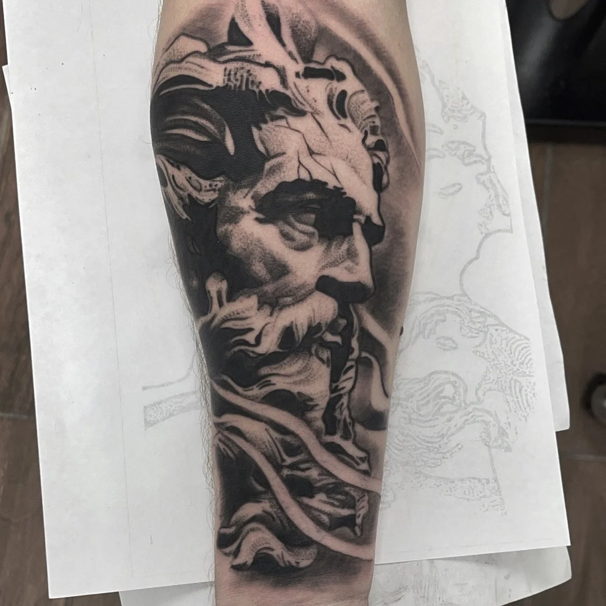 Greek Bust Tattoo Line Work Tattoo Tattoos Body Art